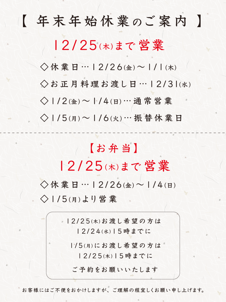 年末年始のお知らせ